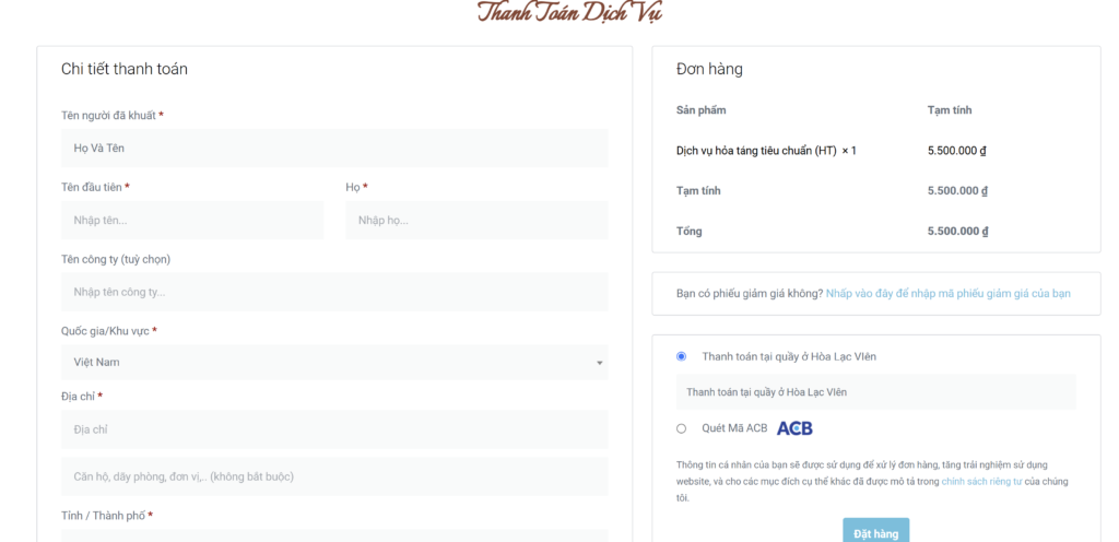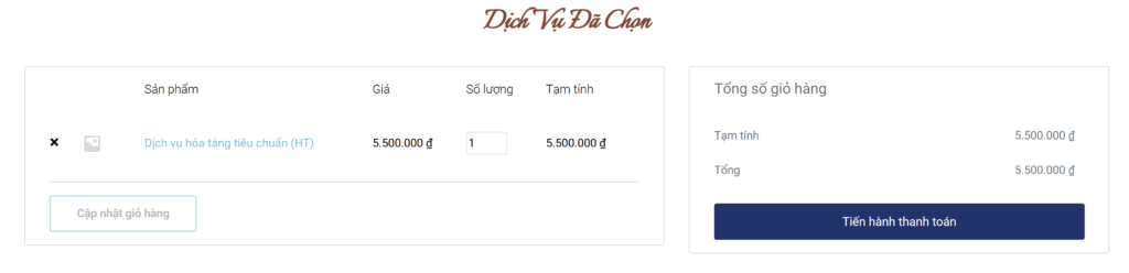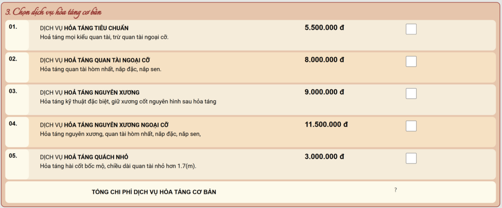 – Chọn 1 dịch vụ hỏa táng cơ bản.